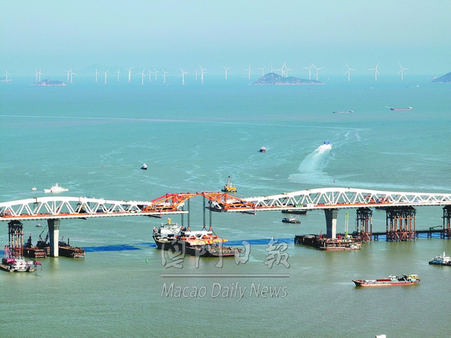 【本報消息】經北主橋在上月順利合龍後,預計本月竣工的澳氹第四條跨海大橋,最近正吊裝最後一截的鋼箱樑構件,料近日完成全橋合龍。