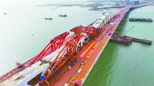 【本報消息】全長約三點一公里的“澳氹第四條跨海大橋”,經過近四年,終於前晚完成全橋合龍,是極為重要的階段性里程碑,亦標誌着項目由主體結構工程邁入橋樑附屬結構工程。