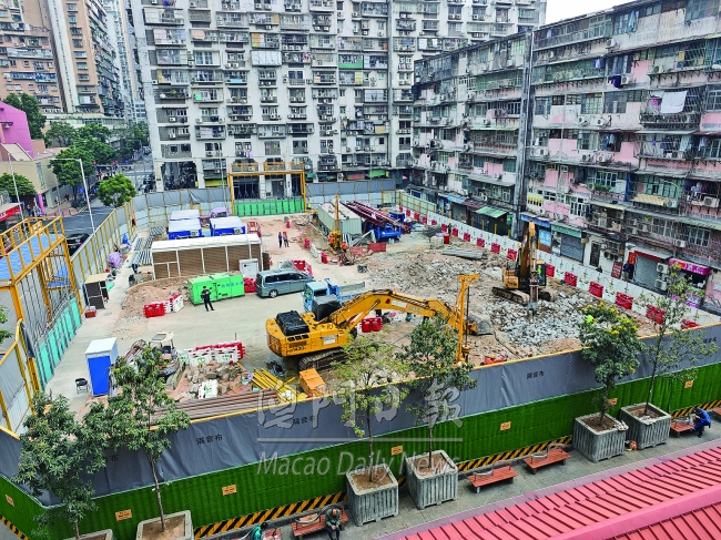 【本報消息】澳門首個都市更新先導項目“祐漢新邨第八街的夾心房屋建造工程”自上月委託,早前已完成施工場地圍封,承建商並於昨日在靠近順利樓一側的祐漢新村第七街佔用約兩點五米範圍設置圍板,以便開展管線遷移及土質改良施工。