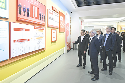 岑浩輝還前往粵澳合作中醫藥科技產業園,考察中醫藥科技創意博物館展示中心及園區內的企業,聽取園方代表介紹產業園整體規劃、運營發展,以及企業進駐園區的情況。