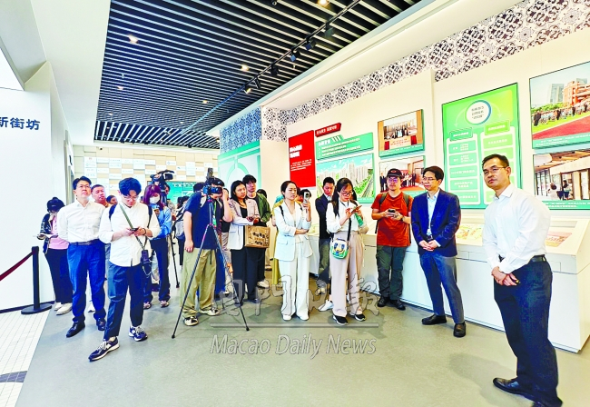 “機遇灣區”主題採訪活動,繼“機遇澳門”後昨天最後一日行程兵分兩路,一路赴珠海高新區參訪,另一路轉至橫琴深合區展開各項參訪行程。橫琴線首站到訪天沐琴台深合區規劃展覽館,採訪團在廣東省橫琴辦主任、深合區執委會副主任聶新平帶領下參觀“琴澳和鳴——橫琴粵澳深度合作區建設主題展”。