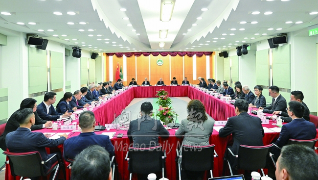 【本報消息】新聞局訊:行政長官岑浩輝昨日在政府總部與本澳工商、金融界社團代表座談,就特區政府編製二○二六年財政年度施政報告聽取意見及建議。