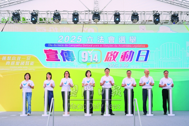 進入宣傳期後,首場官方活動“二○二五年立法會選舉宣傳啟動日”昨日上午九時半在塔石廣場舉行,由盛銳敏、廉政專員歐陽湘、選管會五名委員及郵電局長劉惠明共同主持啟動儀式,象徵競選活動期拉開序幕。