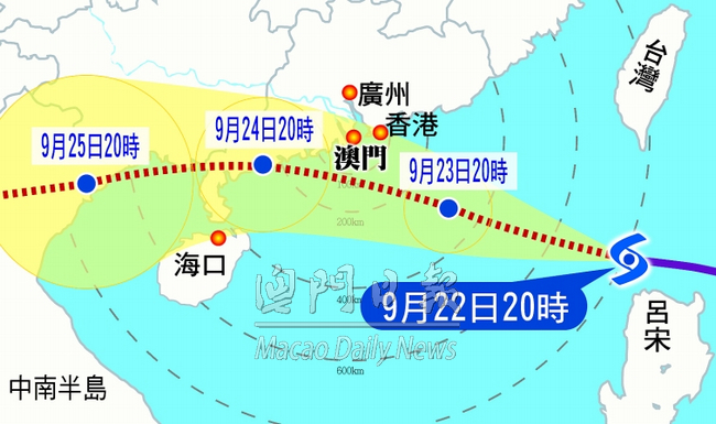 【本報消息】超強颱風“樺加沙”來勢洶洶,全澳嚴陣以待。氣象局今日清晨五時懸掛三號風球,下午四時至七時改掛八號風球,明日(廿四日)凌晨掛九號風球機會較高。橙色風暴潮警告今日下午一時發出,下午至晚間改發紅色風暴潮警告較高。料“樺加沙”明日凌晨至早上掠過本澳,可引致堪比“天鴿”、“山竹”的嚴重水浸。教青局昨提前宣佈今明停課,賭場亦於八號風球停業,居民及商戶做好防風防浸措施、儲水儲糧,應對強颱挑戰。