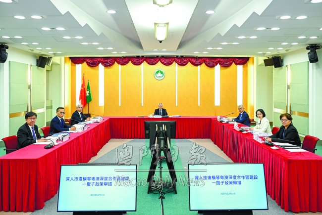 【本報消息】據新聞局訊:行政長官岑浩輝近日召開並主持了促進橫琴粵澳深度合作區建設領導小組第三次會議,總結和探討合作區各項工作推進情況。