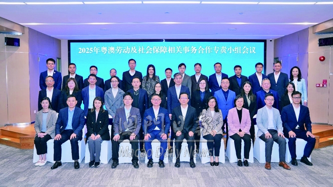 【本報消息】勞工事務局訊:為持續深化粵澳在勞動及社會保障事務領域的合作,共同服務粵港澳大灣區建設,“粵澳勞動及社會保障相關事務合作專責小組”澳門代表團日前赴廣東省開展年度工作會議及業務調研。代表團由澳門勞工事務局及社會保障基金代表組成,先後在廣州、江門、中山等地,與廣東省人力資源和社會保障廳深入座談,並實地考察多項民生合作項目的落實情況。